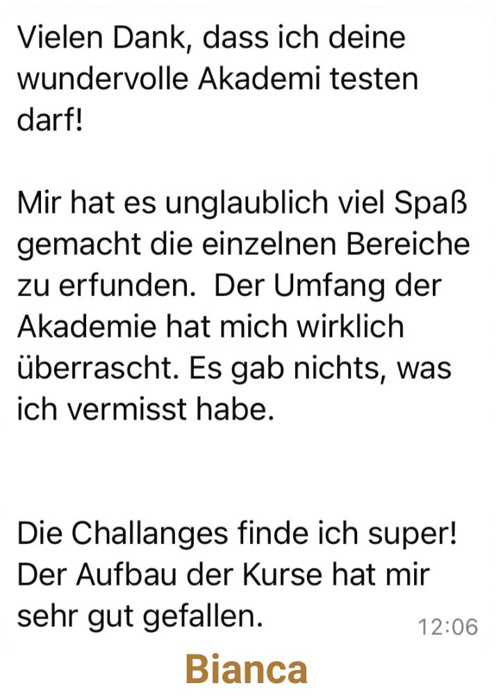 In der Akademie findest du Mindset-Kurse, Reflexionsübungen, geführte Routinen und Traumreisen für mehr Ruhe, Klarheit und Selbstvertrauen.