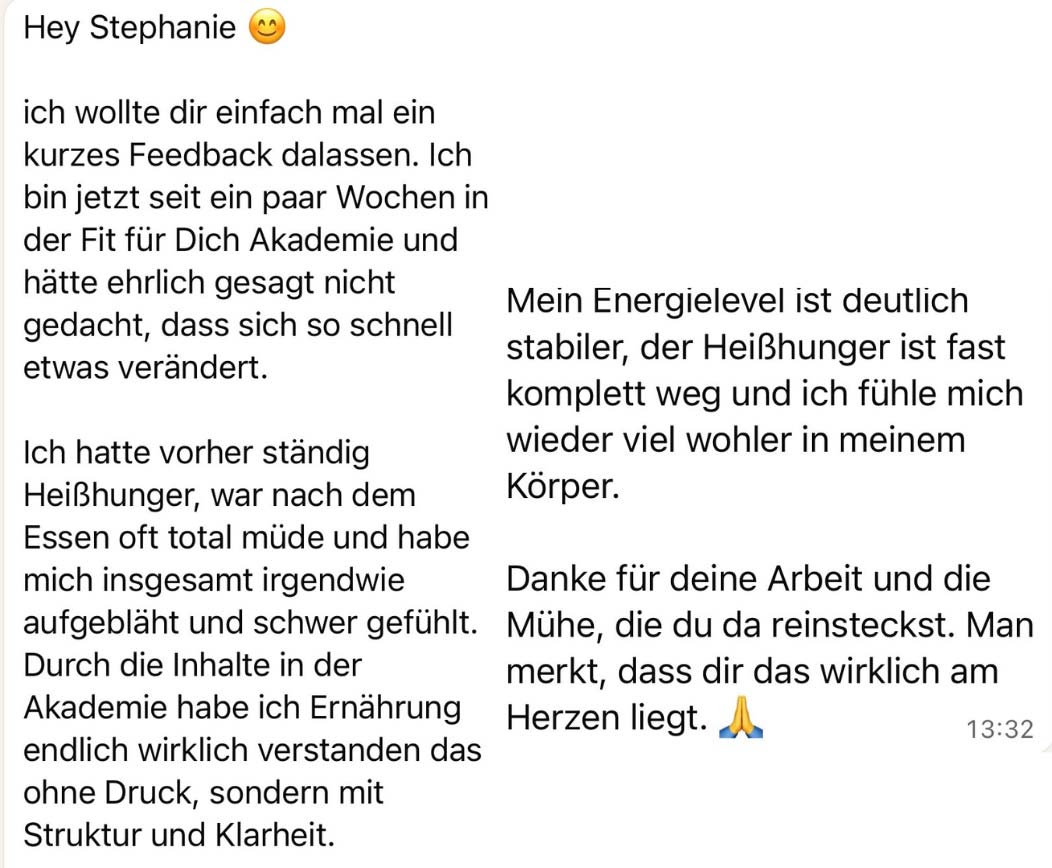 Im Diamant-Paket begleitet dich Stephanie sogar persönlich mit individuellem Trainingsplan, 1:1 Calls und direktem WhatsApp-Kontakt.