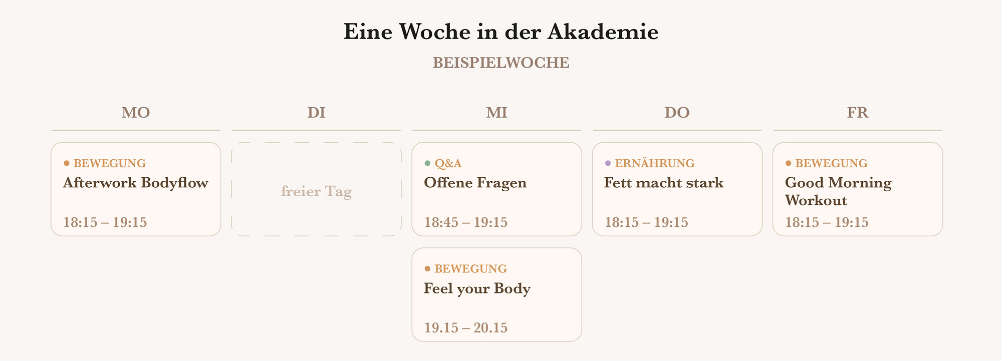 Die Fit für Dich Akademie funktioniert anders. Hier greifen mehrere Bausteine ineinander, damit du wirklich dranbleibst.
